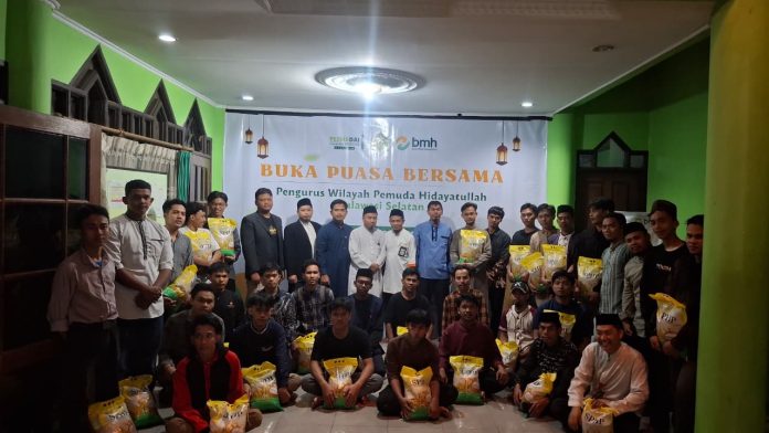 MAKASSAR — Baitul Maal Hidayatullah (BMH) Sulawesi Selatan bersama Pemuda Hidayatullah (PEMHIDA) Sulsel menggelar buka puasa bersama yang dirangkaikan dengan peluncuran Gerakan Solidaritas Pangan bagi mahasiswa rantau, Jumat (27/2/2026). Kegiatan tersebut berlangsung di Pesantren Mahasiswa Dai (Pesmadai) Makassar.