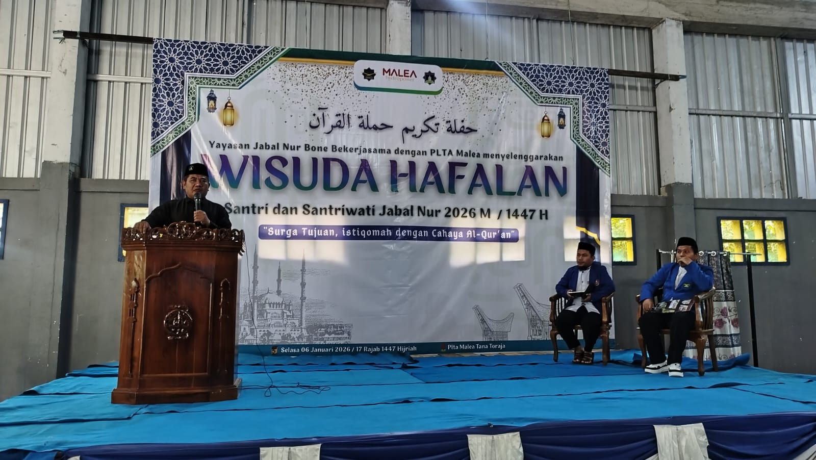 “Mulai tahun ketiga, santri boleh berasal dari daerah mana saja, asalkan memiliki kesungguhan, kedisiplinan, dan fokus dalam menghafal Al-Qur’an,” ujar Manager PLTA Malea, Muhammad Syakur, yang hadir dan mendampingi jalannya kegiatan wisuda.